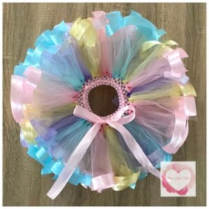 Pink, lemon, lavender & tiffany Ribbon trimmed short Tutu skirt