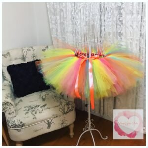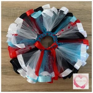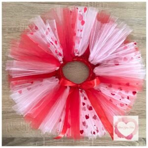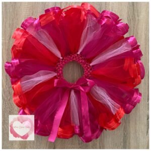 Red, fuchsia & pink glitter ribbon trimmed short Tutu skirt