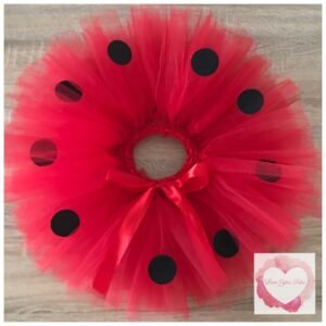 Red with white polka dots Ribbon trimmed short Tutu skirt