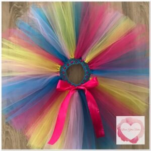 Fuchsia, pink, yellow & turquoise short Tutu skirt