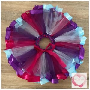 Fuchsia, baby blue & purple Ribbon trimmed short Tutu skirt
