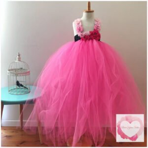 Shocking pink full length girls Tutu dress 1/4 bodice